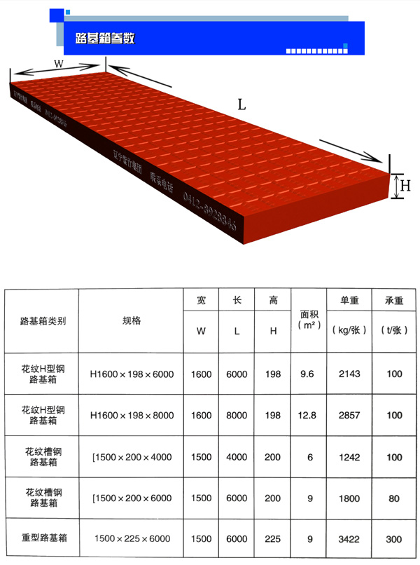 路基箱主要是花紋槽鋼和花紋H型鋼構成,結構的表面是帶有花紋的防滑結構,形成一個箱體。現場安裝按需排布,可以構筑成臨時道路、施工平臺等,可重復使用。
